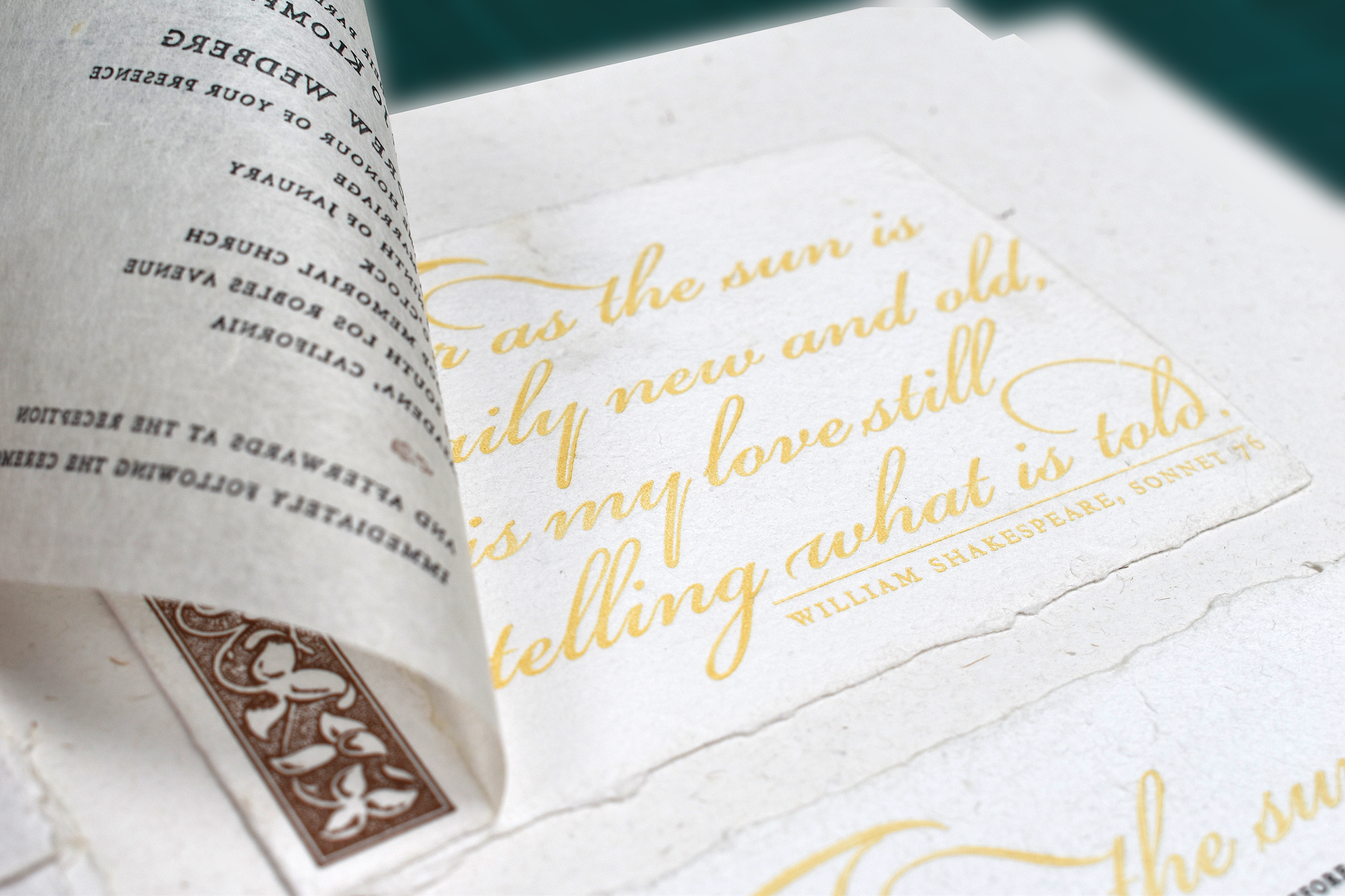 While our preference is to use hand-set type, we are happy to collaborate in creating computer-generated layouts to be turned into metal or polymer printing plates. The images shown here are just a few examples of our work.